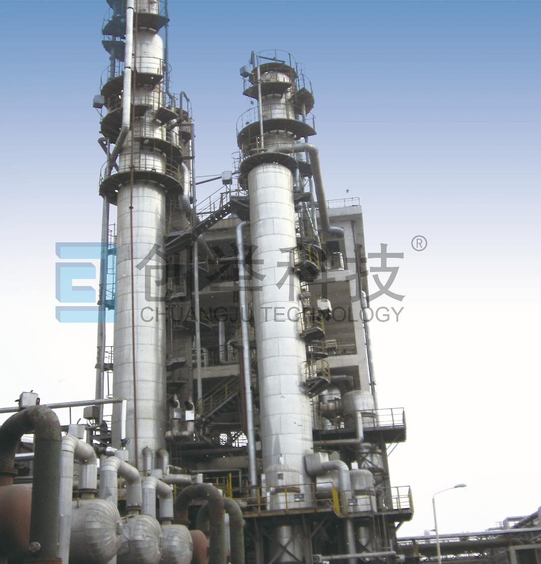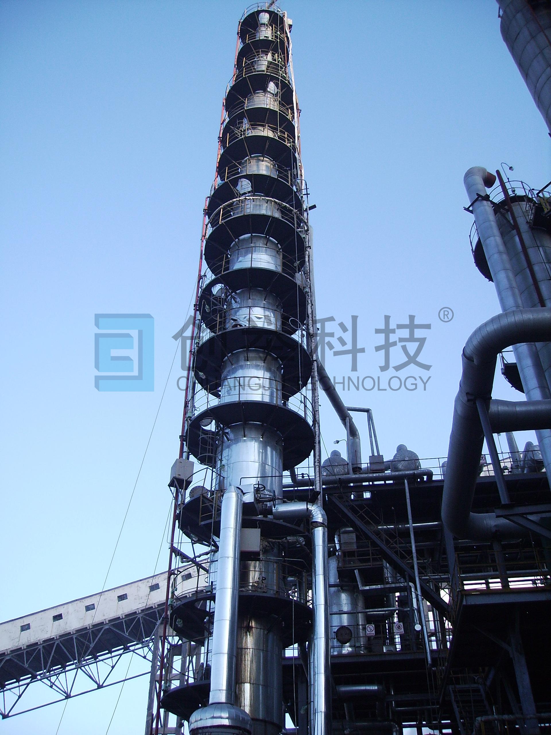 哈爾濱某廠80噸系統(tǒng),原設計塔內(nèi)件為固閥塔盤,運行周期只有一個月。我公司針對該塔的堵塞問題,成功研發(fā)了膜噴無返混無濃度梯度塔盤。