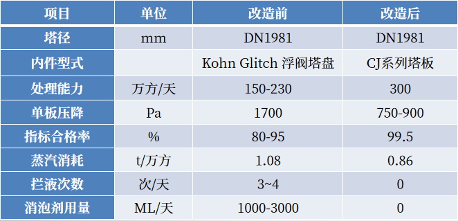 下表為第一凈化廠脫酸塔改造前后指標對比: