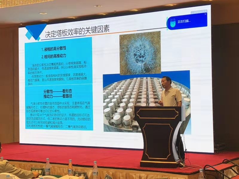 會議期間創(chuàng)舉公司董事長王柱祥先生以“新一代逆流無返混噴射態(tài)塔板技術(shù)”為題展開技術(shù)宣講。會上詳細(xì)講解創(chuàng)舉新型CJ系列噴射態(tài)塔板的技術(shù)原理及特點,以及該技術(shù)在烯烴提濃、酸性水汽提等領(lǐng)域的典型應(yīng)用。